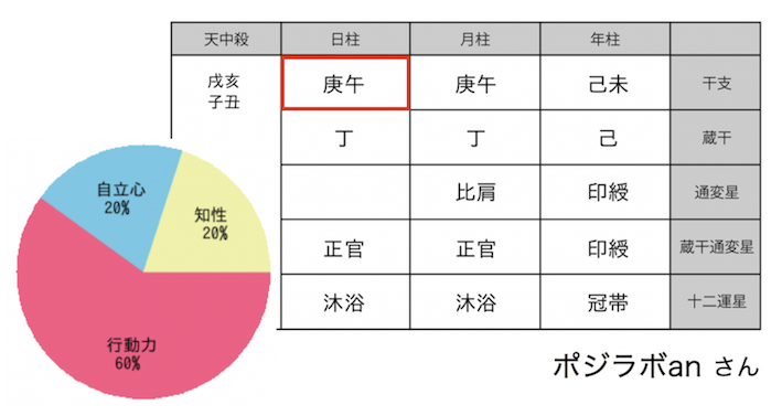 こちらがポジラボanさんの命式と通変星のパラメーターです。