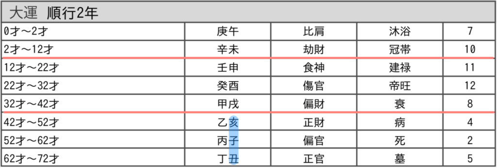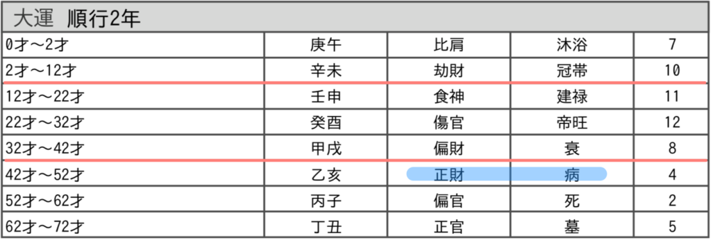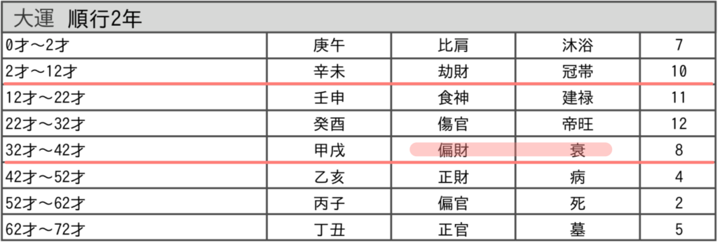 そこで、直近の42歳〜52歳の大運についても見ていきましょう。