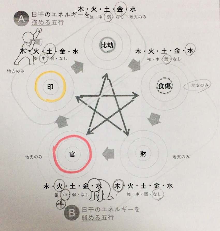 - ポジラボanさんの命式の五行バランスは、官星・印星突出型