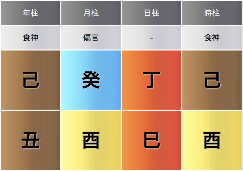 上で書いた【丁巳】の特長にもあるように、ごにージュニアくんの命式で着目したいのは【傷官】。