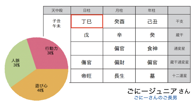 こちらがごにーさんの命式と通変星のパラメーターです。
