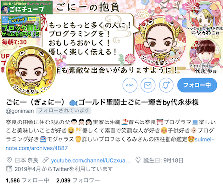 ごにーさんといえば、プログラミングをやさしくおしえてくれる ごにチューブの人。