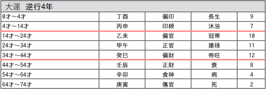 社会運を示す大運(だいうん / たいうん)で見ていきます。