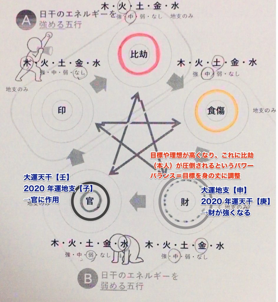 2020年(庚子)、2021年(辛丑)の2年間は、ごにージュニアさんの五行バランスの【財】と【官】の星が動きます。