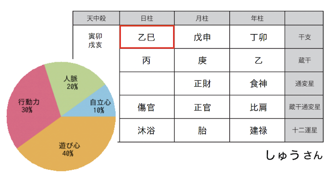 こちらがしゅうさんの命式と通変星のパラメーターです。